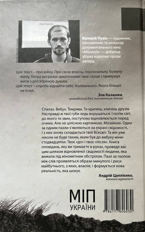 Автор: Валерій Пузік «Моноліт» - дебютна збірка короткої прози захисника України Валерія Пузіка: українського художника, письменника, режисера та ...